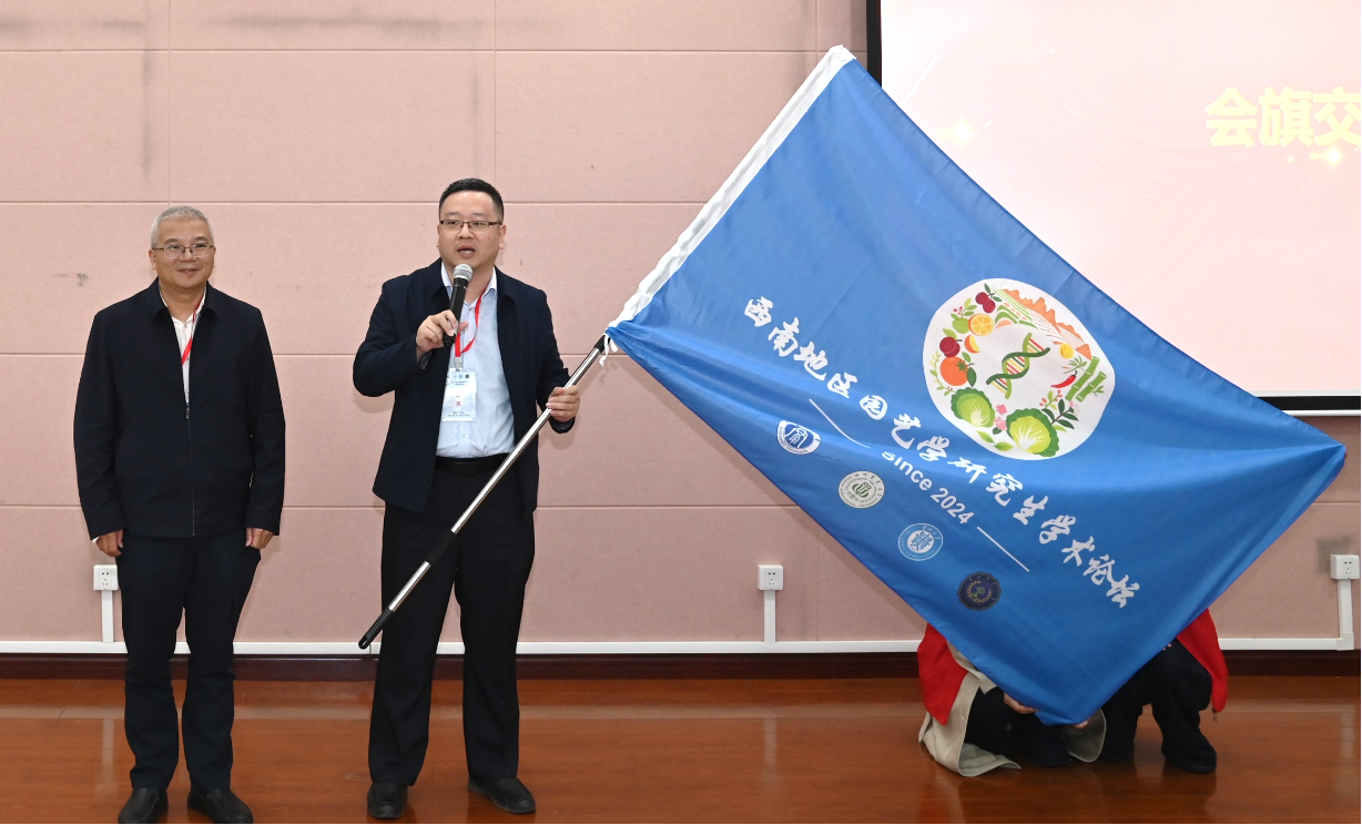 闭幕式最后环节,宋洪元与孙勃进行了会旗交接,下一届论坛将由四川农业大学园艺学院主办。