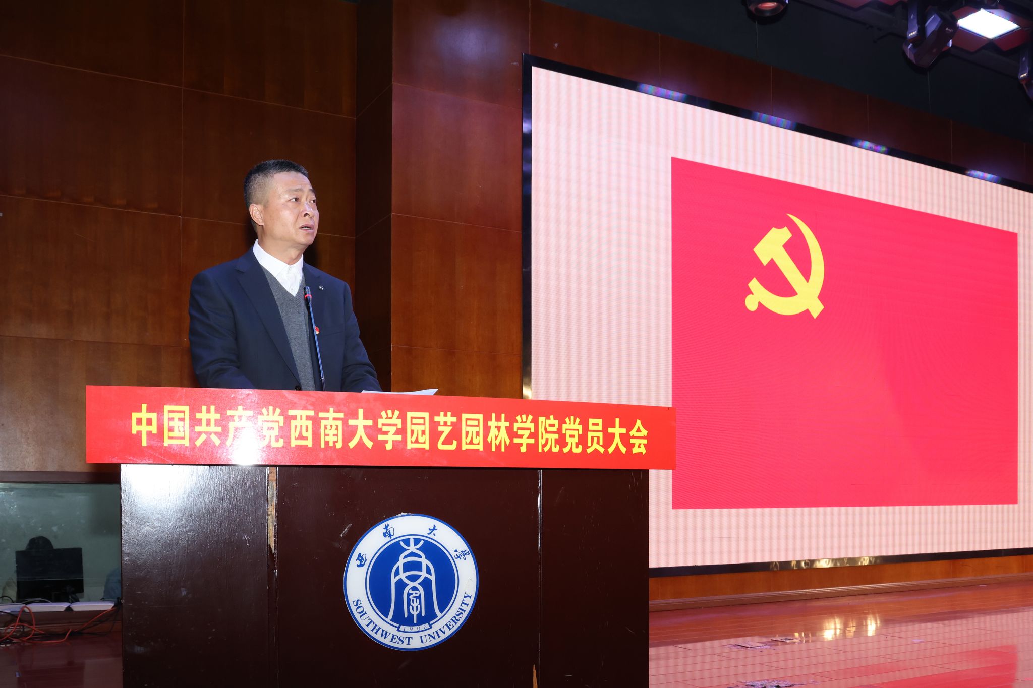 大会在庄严的国歌声中拉开帷幕。学院党委书记周建华代表学院党委向大会作了题为《凝心聚力,改革创新,奋力谱写园艺园林学院高质量发展新篇章》的报告。