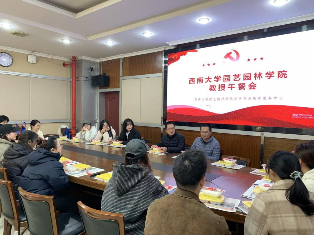 12月1日,学院第十二期“园行领航”教授午餐会在33教407室顺利举行。本次活动以“绿韵承新质・科研润初心”为主题,特邀园艺系汤青林教授、魏大勇副教授作为主讲嘉宾,与十余名本研学子共进午餐、畅谈成长。