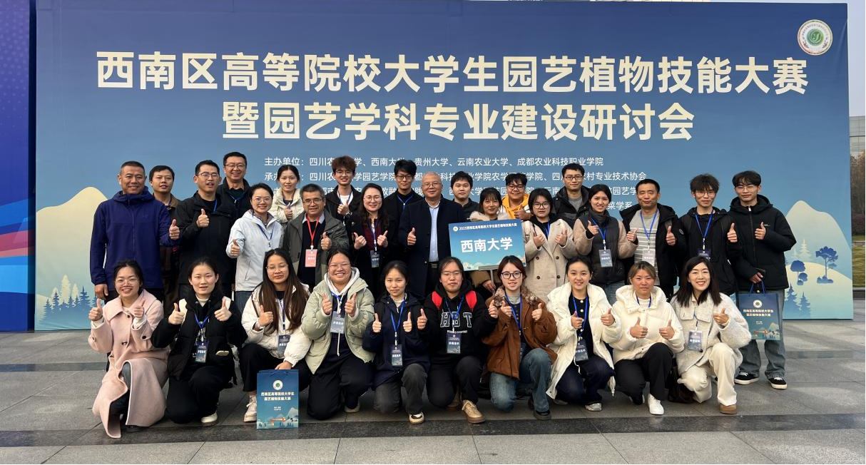 11月28日至30日,由四川农业大学园艺学院、成都农业科技职业学院和四川省农村专业技术协会联合承办的“2025年西南区高等院校大学生园艺植物技能大赛”在四川成都举办。本届赛事汇聚了来自西南大学、贵州大学、四川农业大学、云南农业大学及成都农业科技职业学院等高校的30支参赛队伍。学院院长宋洪元、副院长潘宇带队参赛,学院园艺专业学子凭借扎实的理论功底、精湛的操作技能与出色的团队协作,在激烈角逐中脱颖而出,一举斩获多项团体与个人奖项,其中包括赛事最高等级奖项,充分展现了学院学子的卓越风采与人才培养的实践成效。